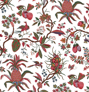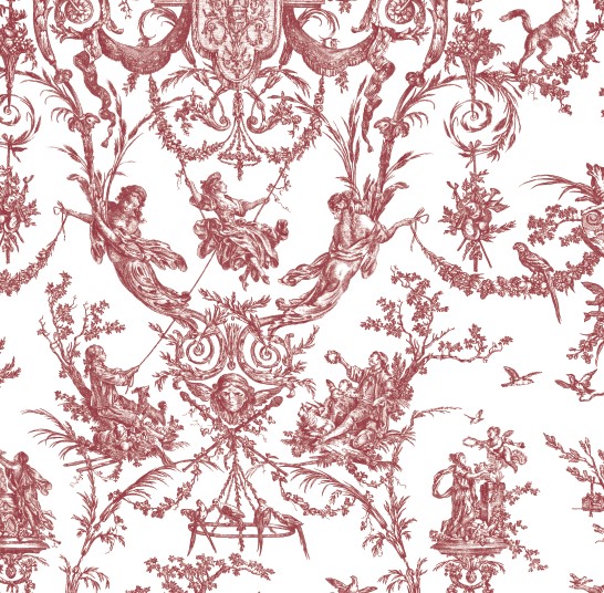 Autre motif iconique de Toile de Jouy et reconnue par les adeptes de toiles au motifs bucoliques, L’escarpolette est à découvrir dans la couleur classique et historique, rouge garance.