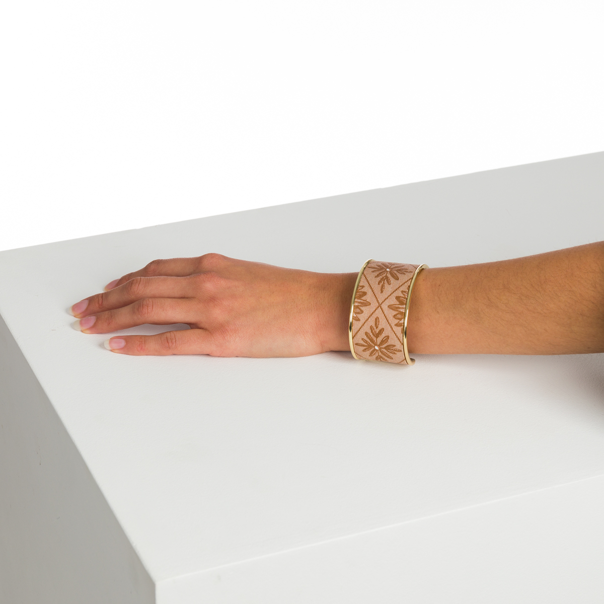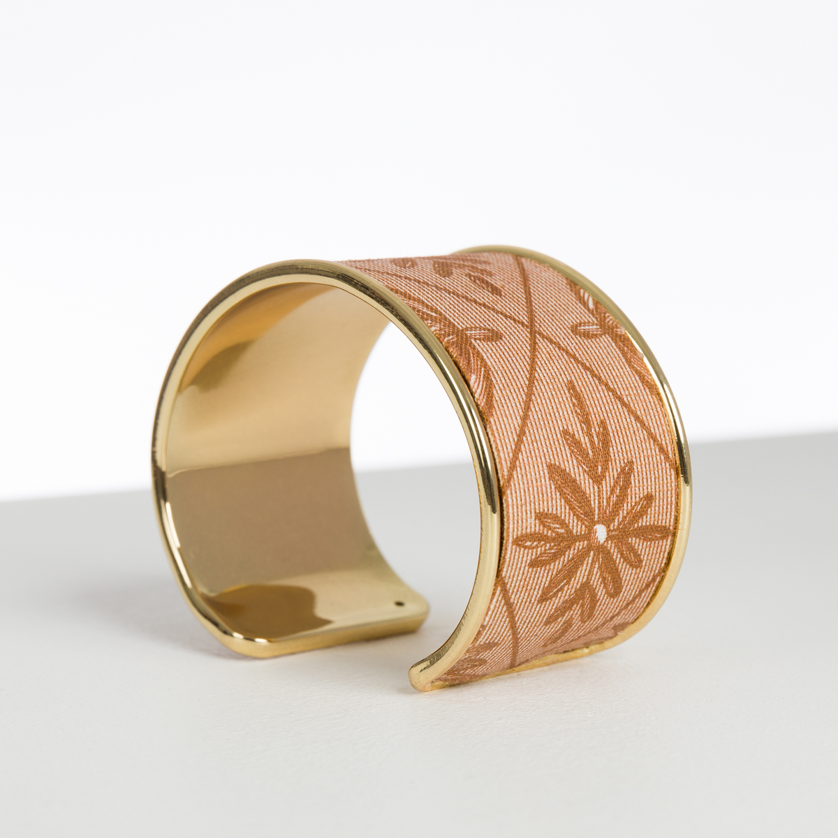 Bracelet Jonc en métal doré à l’intérieur et Toile de Jouy à l’extérieur.