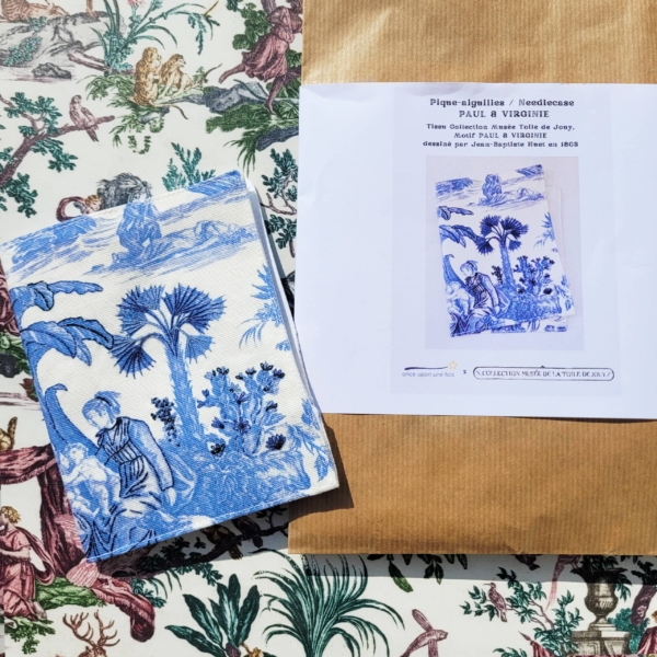 COUPON 100% COTON, motif “Paul et Virginie” Bleu,