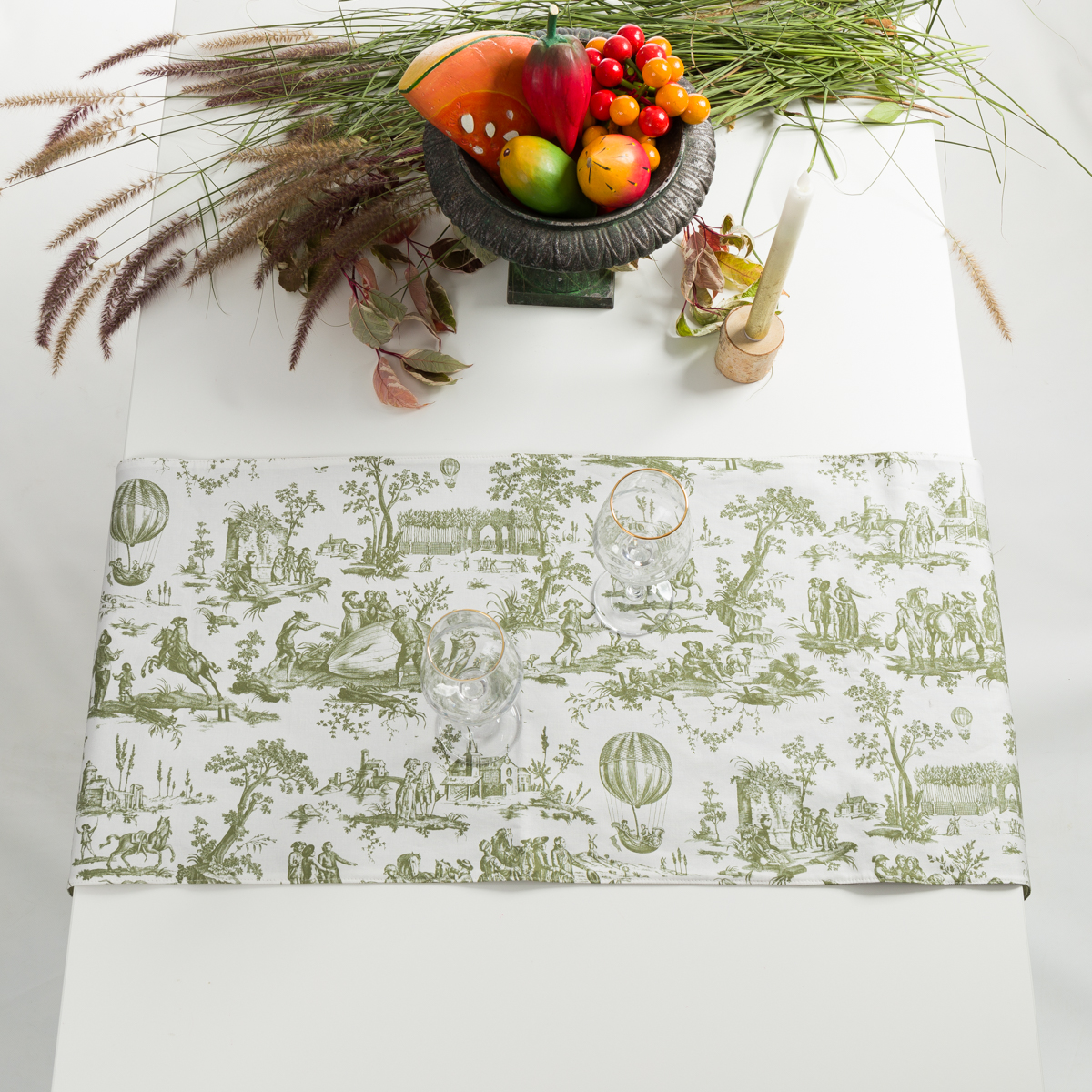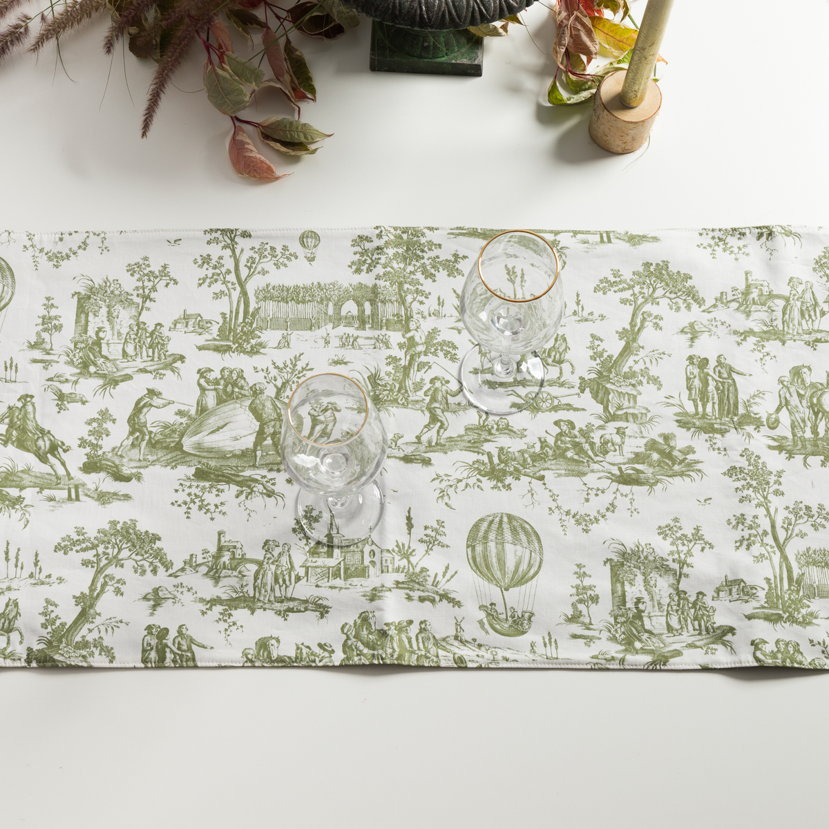 Dans la seconde moitié du 18ème siècle se multiplient journaux, gazettes et revues qui diffusent à l’intention des classes aisées l’information sur l’actualité dans différents domaines. Cette actualité retentissante se retrouvent également sur les toiles imprimées et participent à la diversité des productions et donc au succès de la Manufacture de Jouy. Oberkampf fait représenter par exemple un fait historique devenu un phénomène de mode dans les arts décoratifs : les premières ascensions en ballon. L’évènement du Ballon de Gonesse, parti du Champs-de-Mars et qui s’écrase à Gonesse le 27 août 1783 est imprimé dans les mois qui suivent par la Manufacture. Cette toile de Jouy est bien plus qu’un simple motif décoratif, c’est un véritable témoignage de l’époque, qui illustre l’intérêt des Français pour les nouvelles technologies et leur fascination pour le ciel.