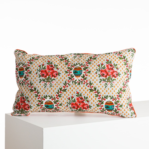 Coussin rectangle déhoussable en toile de Jouy