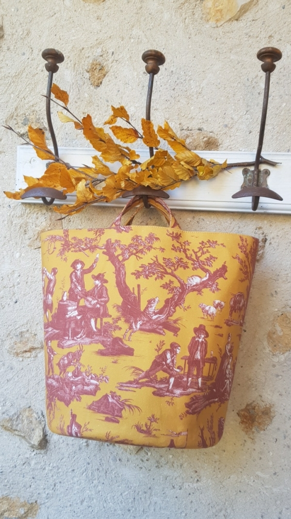 Grande corbeille à anses ou sac seau en Toile de Jouy
