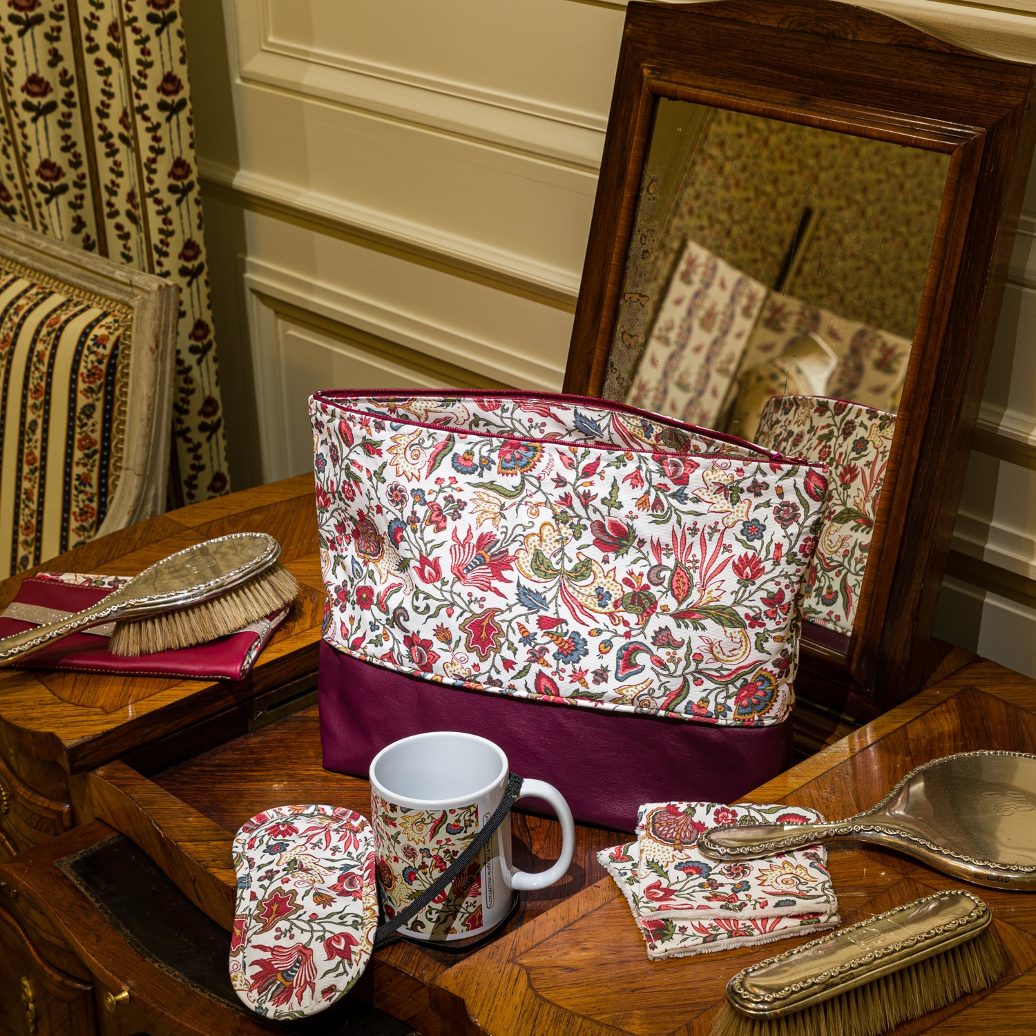 Composition: Toile de Jouy Coton/similicuir/doublure chlorofibre