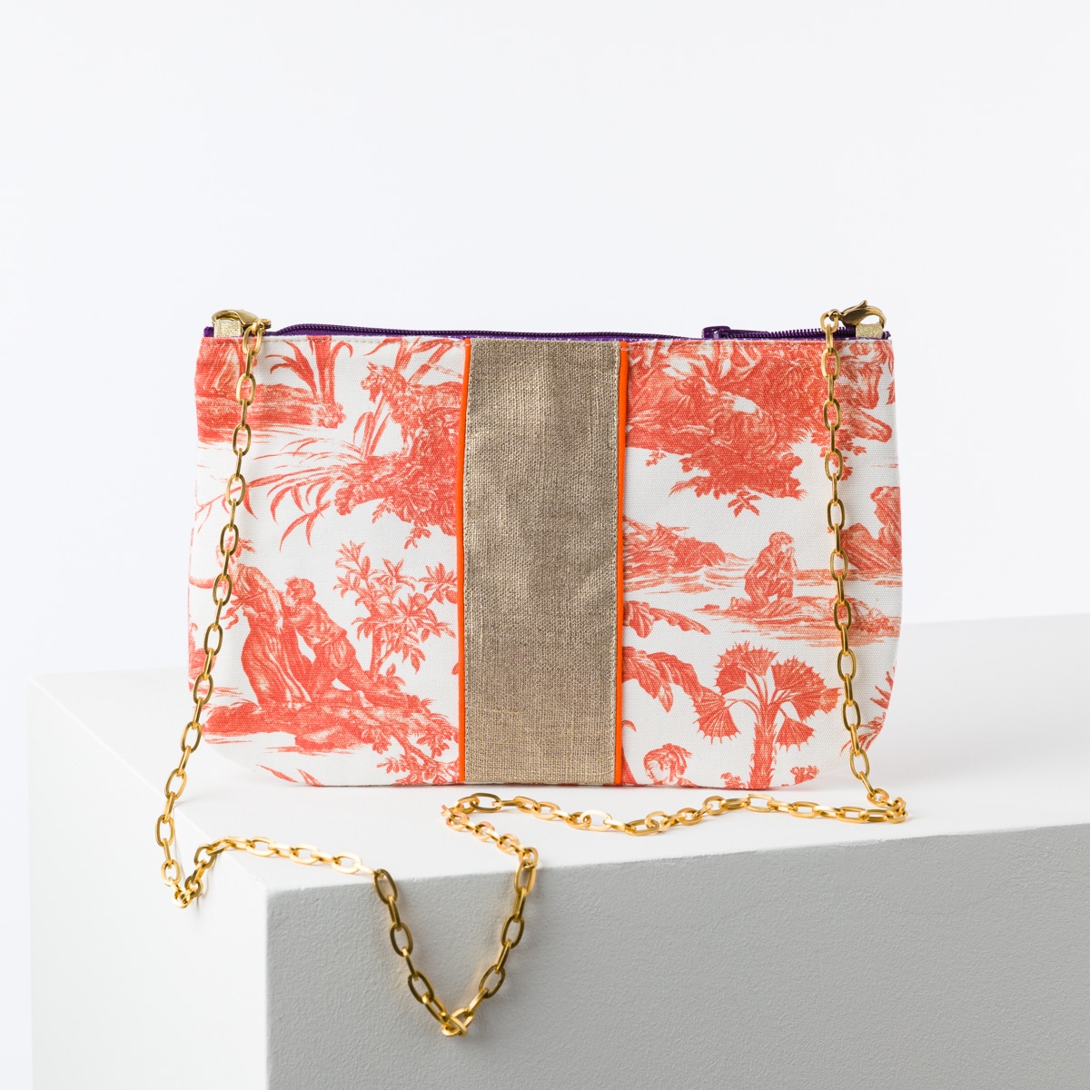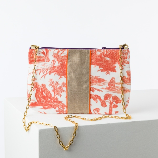 Composition : Toile de jouy 100%, doublure 100% coton – bande lin – chaine laiton