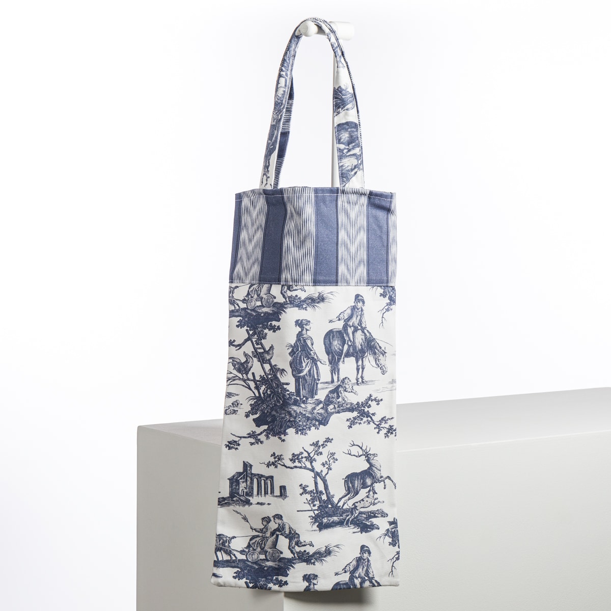 Le motif Les Plaisirs de la campagne élaboré par Jean-Baptiste Huet en 1802 pour la Manufacture Oberkampf se vend à l’origine sous le titre commercial La petite chasse. Toutefois, il est rapidement identifié sous un nouveau titre puisque la chasse est peu présente dans le dessin, qui comporte plutôt des scènes de vie paysanne et des saynètes champêtres. Dernière pastorale réalisée par l’artiste pour la production de Jouy, on perçoit le goût de l’antique qui est à la mode dans les arts décoratifs. Ici, ce sont les ruines qui sont utilisées comme décor. Au tournant du XIXe siècle, l’esthétique de la ruine ajoute à l’idéalisation nostalgique et pittoresque des campagnes. Elles accentuent l’effet de douce langueur déjà évoquée avec le motif du bateau et des animaux qui paissent.