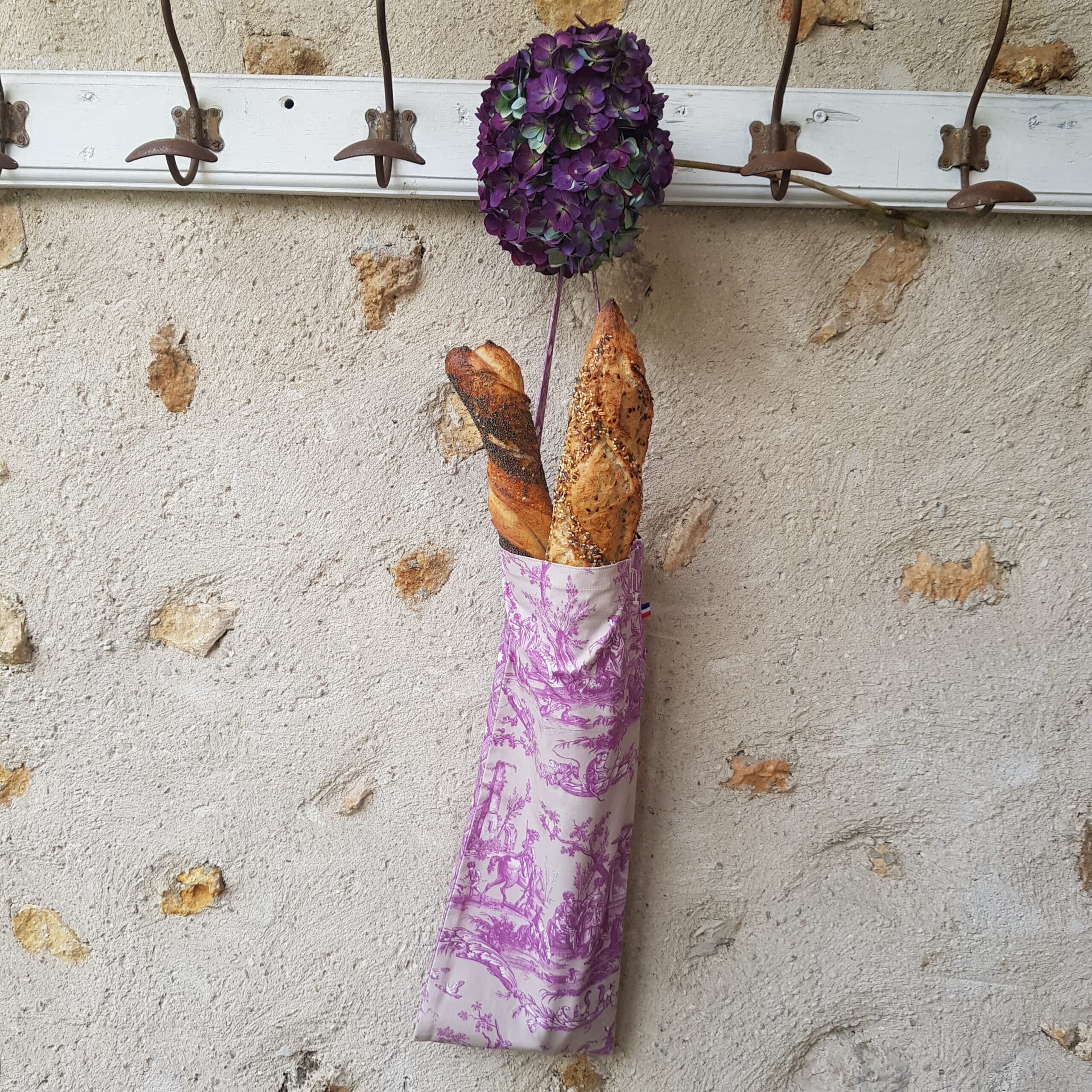 Sac à baguette en toile de Jouy de chaque côté ou en toile de Jouy et lin naturel.