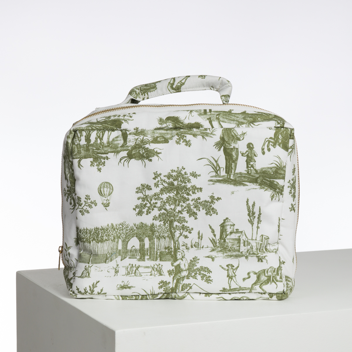 Dans la seconde moitié du 18ème siècle se multiplient journaux, gazettes et revues qui diffusent à l’intention des classes aisées l’information sur l’actualité dans différents domaines. Cette actualité retentissante se retrouvent également sur les toiles imprimées et participent à la diversité des productions et donc au succès de la Manufacture de Jouy. Oberkampf fait représenter par exemple un fait historique devenu un phénomène de mode dans les arts décoratifs : les premières ascensions en ballon. L’évènement du Ballon de Gonesse, parti du Champs-de-Mars et qui s’écrase à Gonesse le 27 août 1783 est imprimé dans les mois qui suivent par la Manufacture. Cette toile de Jouy est bien plus qu’un simple motif décoratif, c’est un véritable témoignage de l’époque, qui illustre l’intérêt des Français pour les nouvelles technologies et leur fascination pour le ciel.
