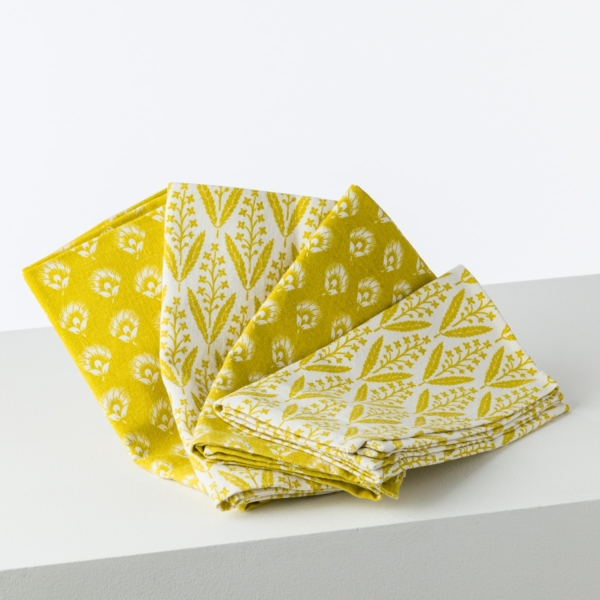 Ce motif de fleurs en épis a été recréé à partir d’une empreinte de la Manufacture Oberkampf. L’empreinte constitue une étape importante dans le processus d’impression sur étoffe : il s’agit à la fois d’une mise à l’épreuve de la gravure du dessin, et d’un essai de mise en couleurs. On utilise les planches de bois gravées pour réaliser une impression en noir et en rouge sur un papier. L’empreinte est ensuite peinte à la gouache pour essayer une combinaison de couleurs. Aujourd’hui, les empreintes conservées par le Musée de la Toile de Jouy permettent la réédition de motifs d’époque dans de nouveaux coloris, comme c’est le cas pour Epis.