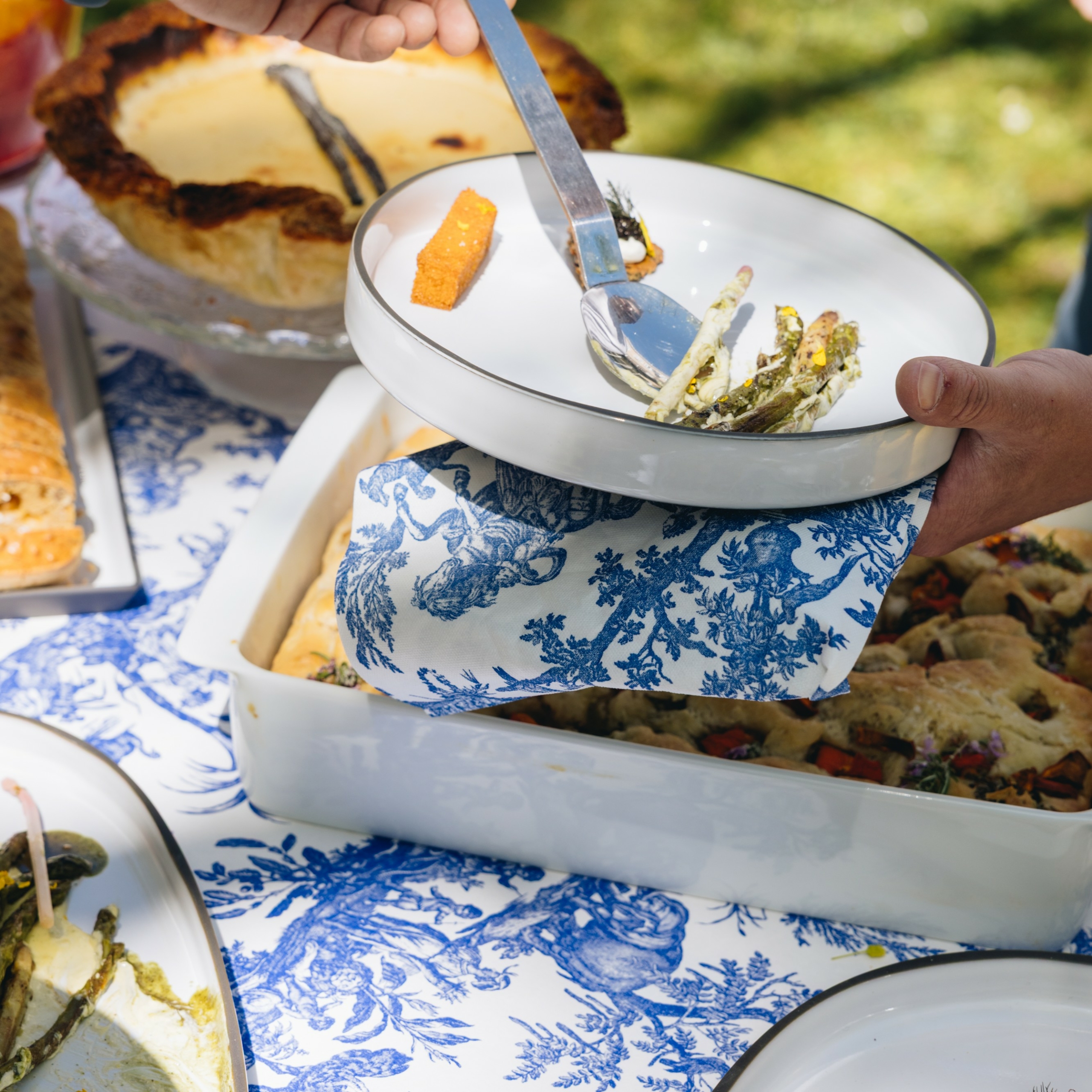 Le motif des Quatre parties du monde est un dessin réalisé par Jean-Baptiste Huet pour la Manufacture Oberkampf en 1790. Cherchant à représenter les quatre continents, l’artiste s’est inspiré de l’Iconologie de Cesare Ripa (1555-1662) publié en 1593. Recueil d’allégories extrêmement célèbre en son temps, cette encyclopédie illustrée alors appelée « livre d’emblèmes » fut l’un des premiers ouvrages de ce genre. Les illustrations sont codifiées afin de caractériser les civilisations et les terres européennes, africaines, américaines et asiatiques. L’Europe par exemple est identifiée par une femme richement vêtue, couronnée et tenant un sceptre, car elle domine le monde. Pour les autres continents, Jean-Baptiste Huet exploite ses talents de peintre animalier et s’amuse à figurer un bestiaire exotique : scorpion, éléphant, fauve, crocodile, autruche, dromadaire, etc. Il ira pour cela observer les animaux au Jardin royal des plantes, qui n’est autre que le Muséum national d’histoire naturelle à Paris, célèbre établissement ouvert au public grâce à son directeur Georges-Louis Leclerc, comte de Buffon, dans le but de vulgariser les sciences naturelles.