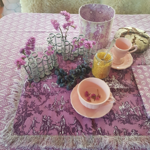 En parallèle des représentations naturalistes de fleurs sur les toiles imprimées par la Manufacture Oberkampf de Jouy en Josas, se développe une production plus fantaisiste : les végétaux sont réduits à leurs éléments constitutifs – racines, tiges, corolles, pistils – rendant toute identification impossible. La schématisation est parfois poussée jusqu’à proposer une nature stylisée dont les compositions deviennent géométriques, comme dans ce motif, où des fleurs, évoquant celles des chardons, sont disposées en quinconce.