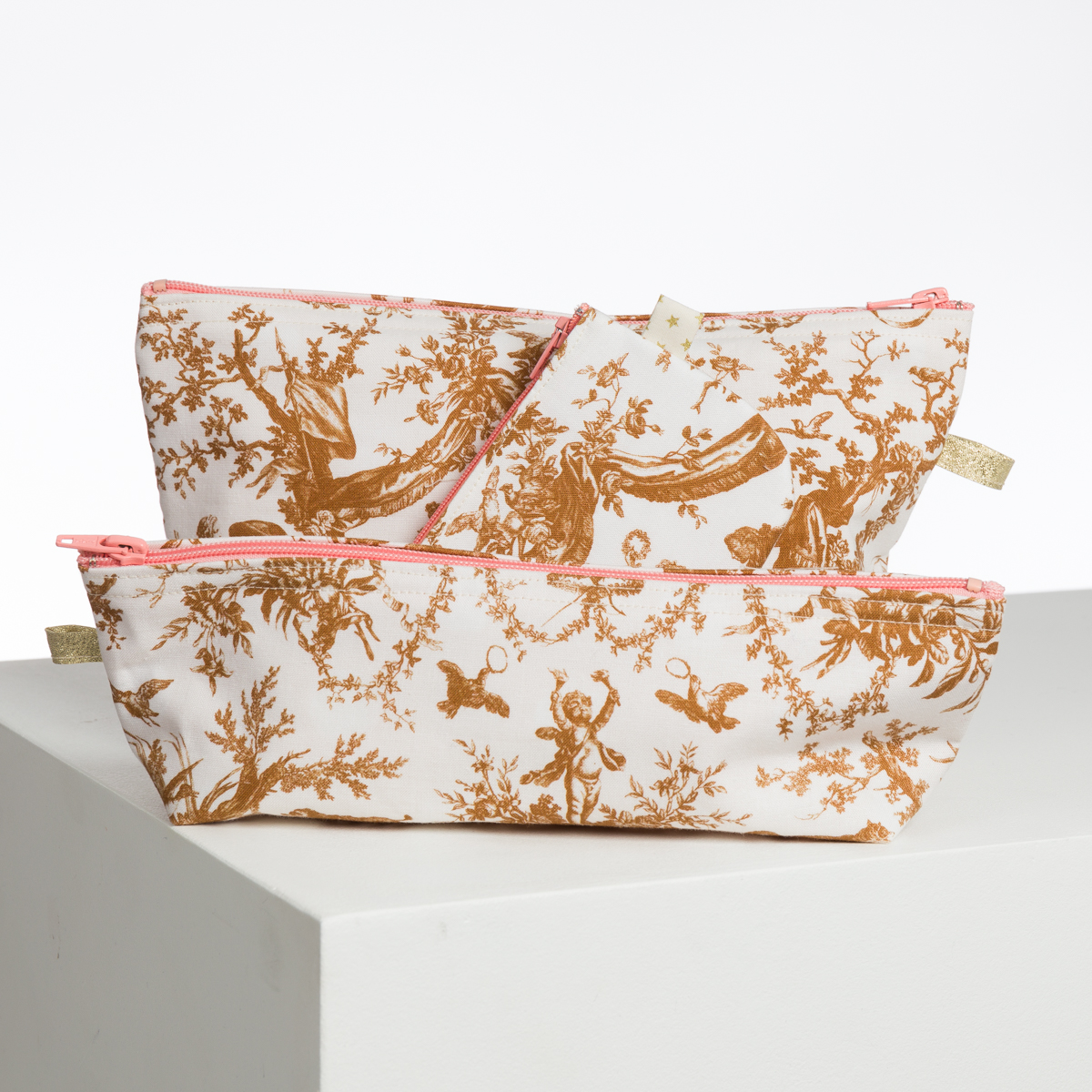 Le Couronnement de la Rosière est un motif emblématique réalisé vers 1875 par Jean-Baptiste Huet, dessinateur attitré de la Manufacture Oberkampf jusqu’à sa mort en 1811. Le thème s’inspire d’une coutume instituée dès le 5ème siècle par saint Médard, évêque de Noyon et seigneur de Salency : chaque année le seigneur récompensait la jeune la plus vertueuse de ses terres, lui offrant 25 livres et une couronne de roses. Au 18ème siècle, la coutume est encore très répandue en Ile-de-France, donnant lieu à la création d’un Opéra-comique à succès en 1773. Le motif représente une scène de cet Opéra, composé au centre de Cécile, couronné de roses par le seigneur de Salency ; à ses côtés est agenouillé Colin, le fiancé de Cécile, et l’on distingue en arrière-plan Nina et Lucile, rivales de Cécile. Jean-Baptiste Huet montre ici la parfaite assimilation du vocabulaire décoratif de son temps, inscrivant la scène dans un riche décor de guirlandes fleuries, de putti et de rinceaux d’acanthes, ponctuée de détails charmants.