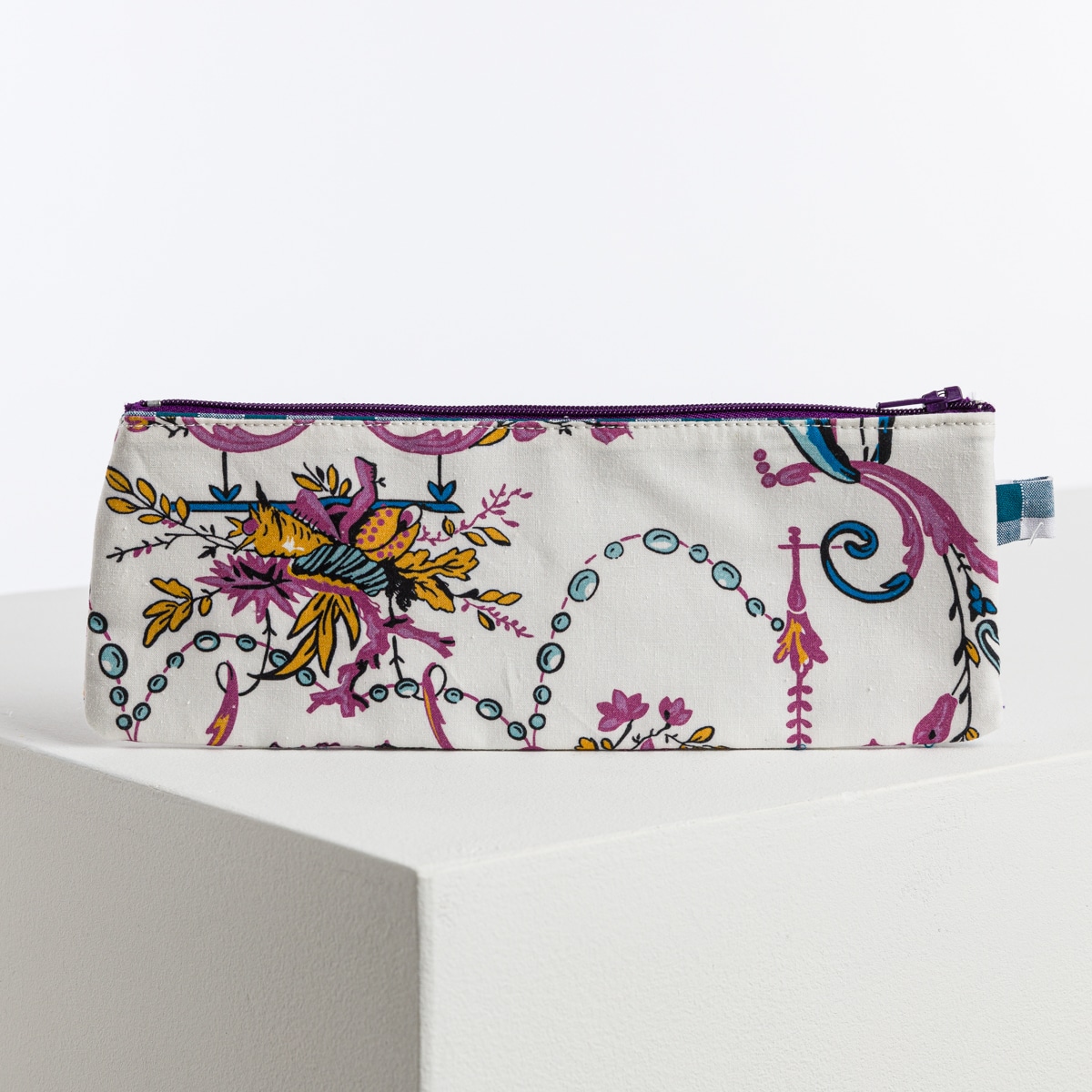Trousse à stylos zippée en toile de Jouy.
